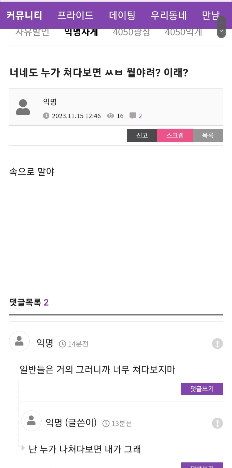 게이끼리도 누가쳐다보면 이래? 작성자 정보 작성 작성일 2023.11.15 17:42 컨텐츠 정보 1 조회 1 댓글 0 추천 0 비추천 목록 관리 글수정 글삭제 답글 본문 ㅇㅇ 0 추천 0 비추천 SNS 공유 관련자료 이전 잘생긴 것들끼린 눈빛 마주치면 “너나 먹고싶지” 이럼 작성일 2023.11.15 17:42 다음 이거 일본에서 대박친건데 작성일 2023.11.15 17:42 댓글 1 익명 님의 댓글 익명 … 작성일 2023.11.15 17:42 완식이면 얘기가 다르지 답글 삭제 완식이면 얘기가 다르지 Select File Upload File 목록 관리 글수정 글삭제 답글