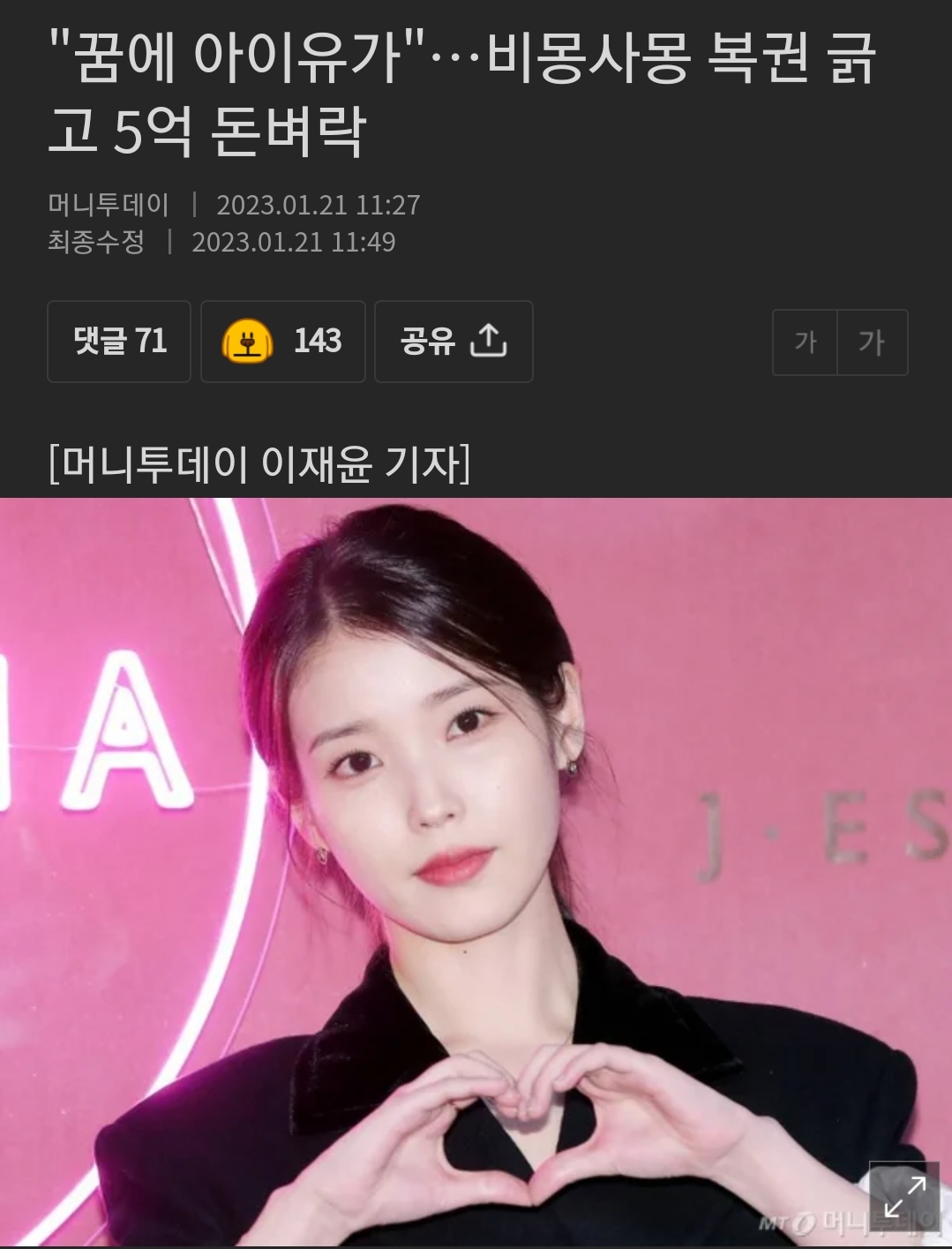 꿈에 아이유가 작성자 정보 끼갈 작성 작성일 2023.01.30 18:44 컨텐츠 정보 85 조회 0 추천 0 비추천 목록 답글 본문 아이유가 0 추천 0 비추천 SNS 공유 관련자료 이전 오늘 왜케 지치지 작성일 2023.01.30 18:45 다음 청결유지 작성일 2023.01.30 18:44 댓글 0 등록된 댓글이 없습니다. Select File Upload File 목록 답글