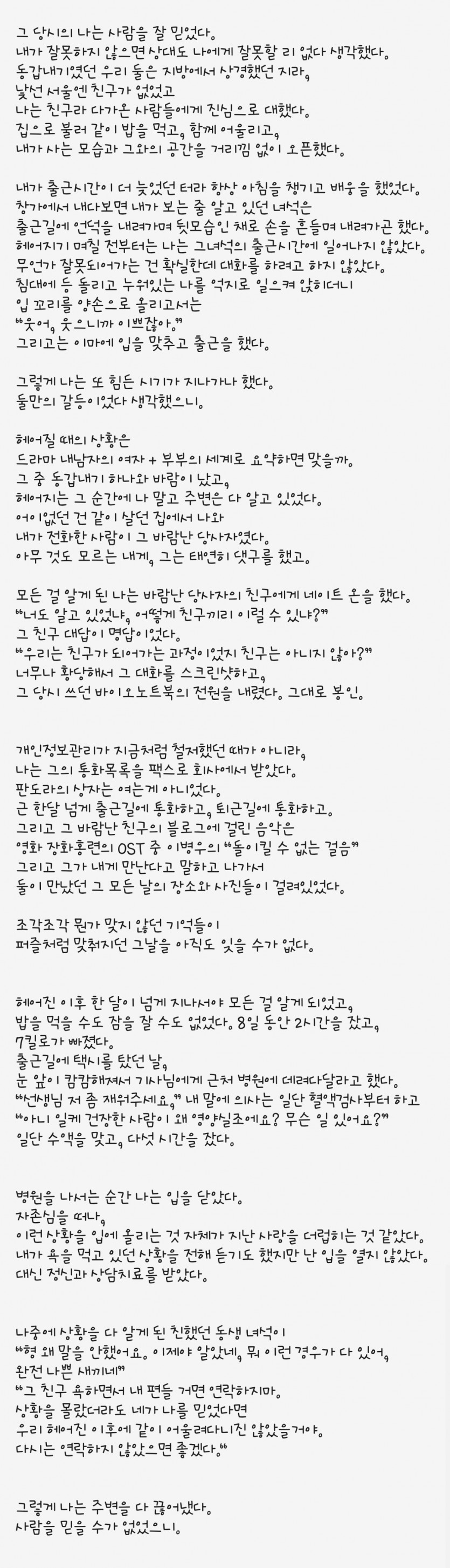 이제는 말할 수 있다. Part.2. 작성자 정보 작성 작성일 2023.11.17 16:39 컨텐츠 정보 2 조회 0 추천 0 비추천 목록 관리 글수정 글삭제 답글 본문 . 0 추천 0 비추천 SNS 공유 관련자료 이전 이제는 말할 수 있다. Part.3. 작성일 2023.11.17 16:39 다음 이제는 말할 수 있다. Part.1 작성일 2023.11.17 16:39 댓글 0 등록된 댓글이 없습니다. Select File Upload File 목록 관리 글수정 글삭제 답글